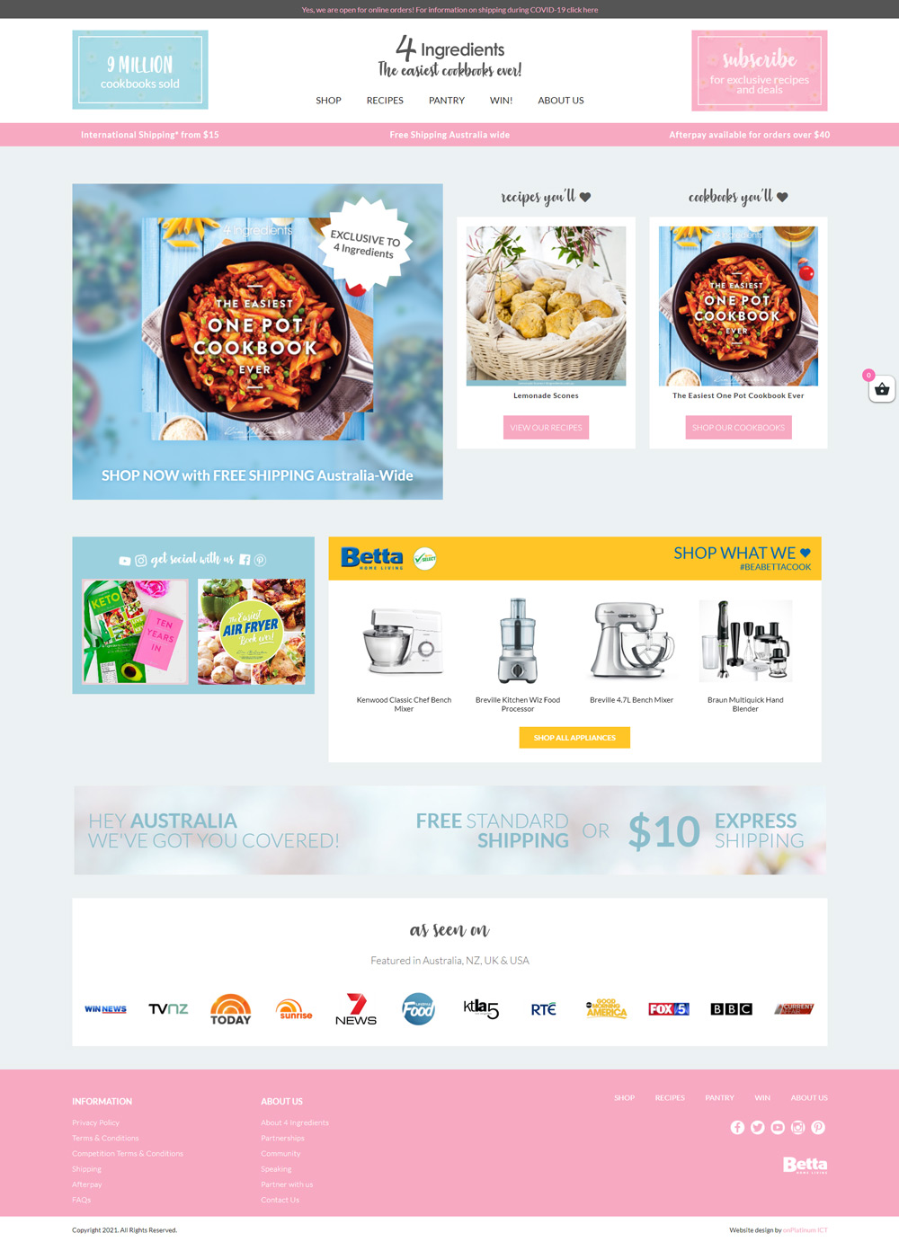 4 Ingredients is a cookbook brand and eCommerce platform built around a simple idea: recipes using four or fewer ingredients. The site needed to support both product sales and ongoing content like recipes, blogs, and community engagement.