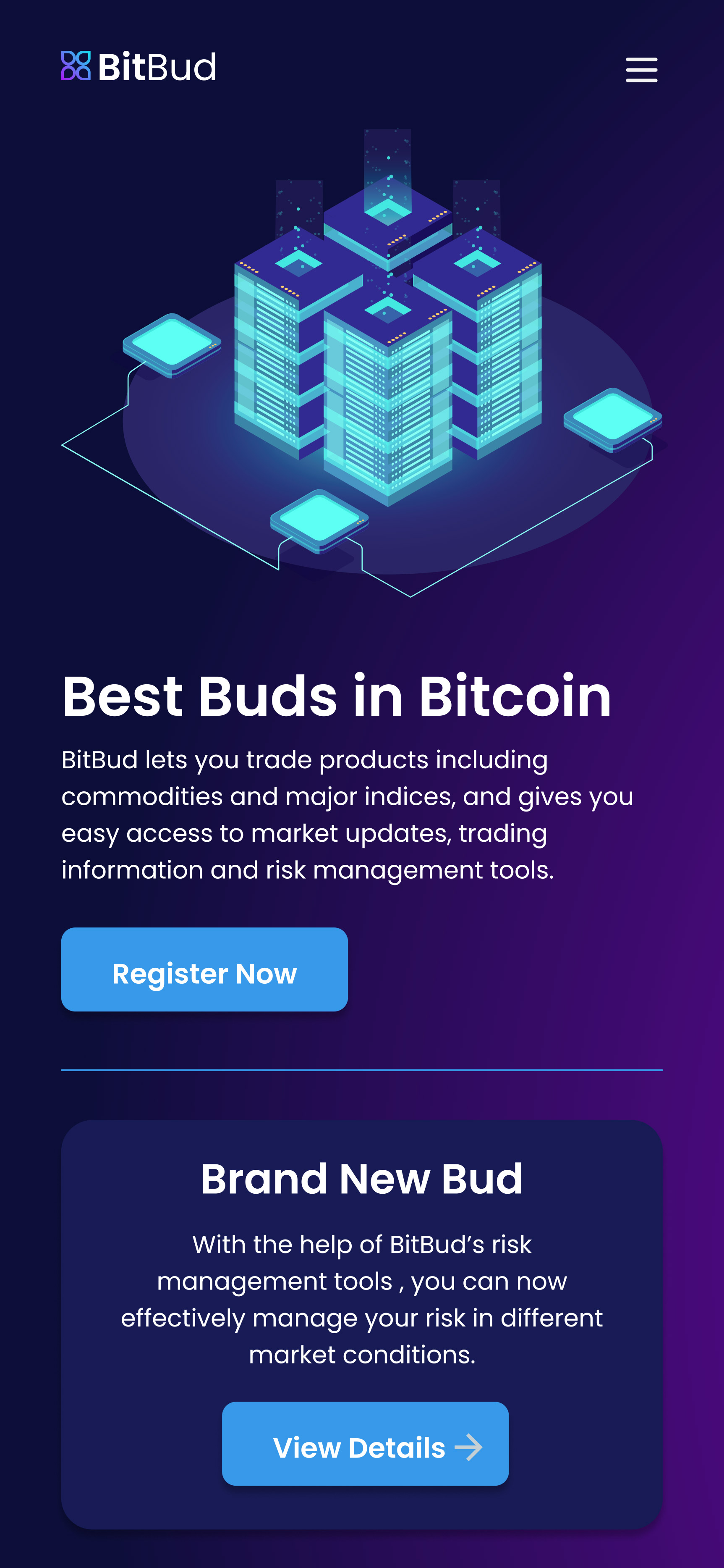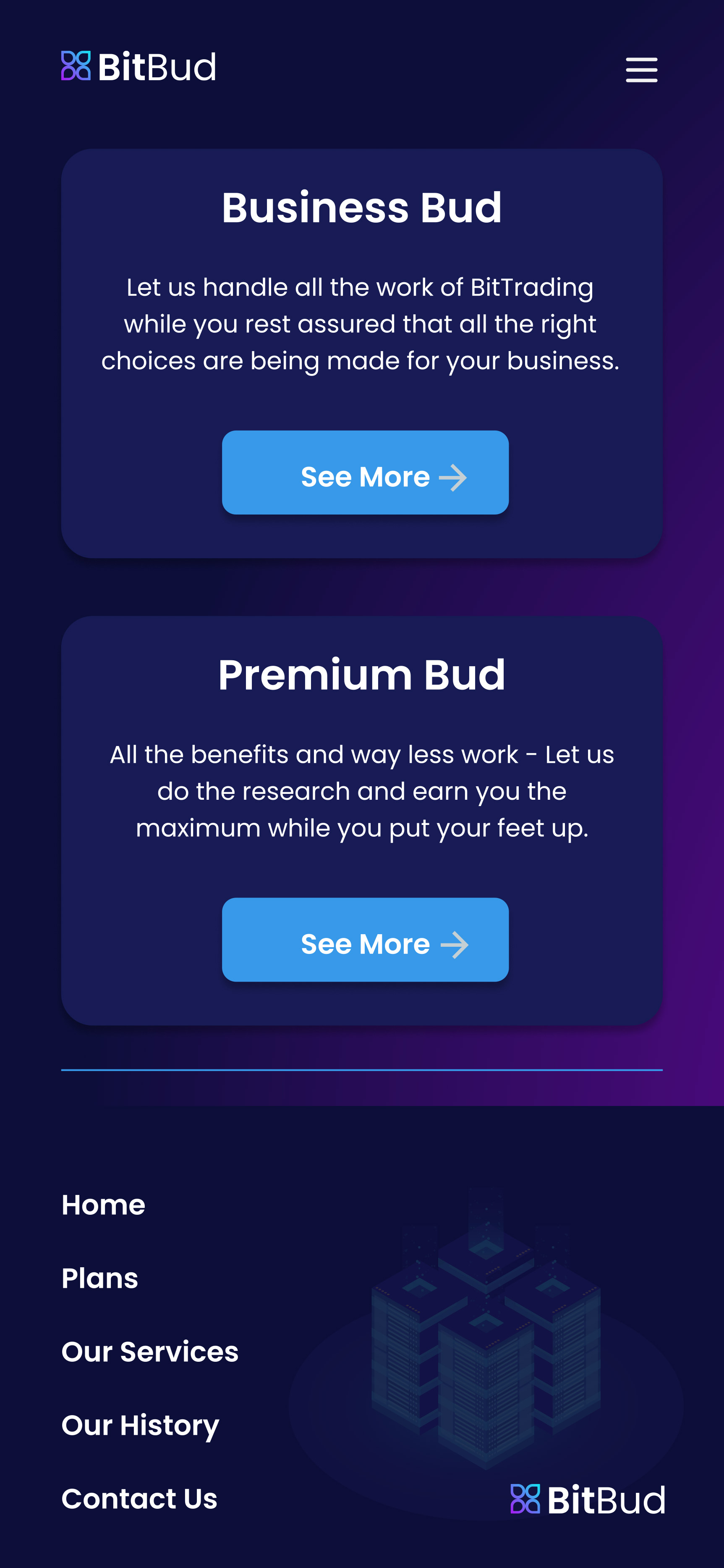 I was brought on to design the branding and website for BitBud, a new Bitcoin trading startup. The project covered both logo creation and a full website mockup.