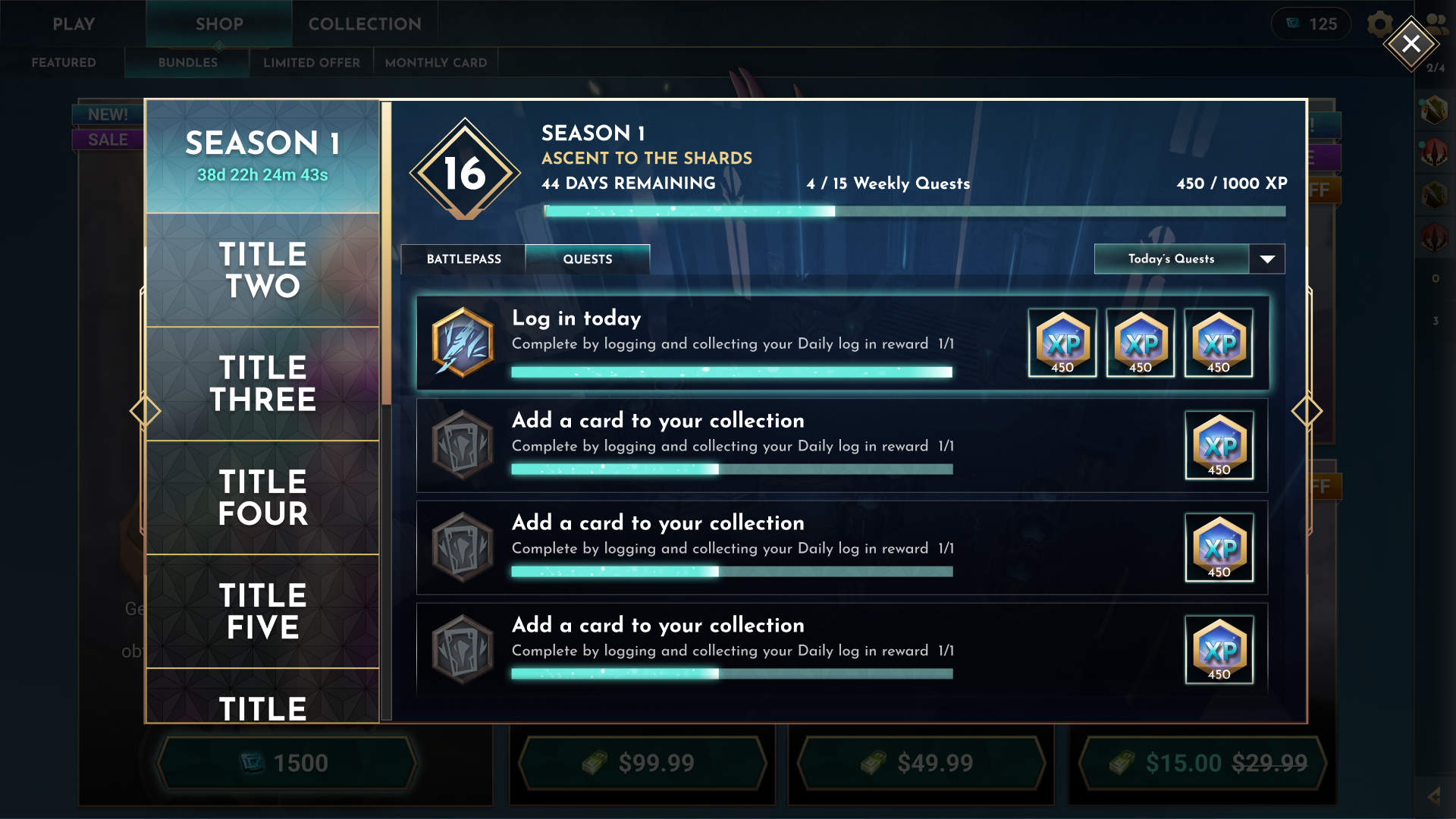 LinkThis project focused on designing the Battle Pass for Shardbound, working closely with the product manager and engineering to define the initial flow, requirements, and constraints. As this was a new feature for the game, the work began by aligning on core objectives and validating early assumptions through internal testing and player feedback.